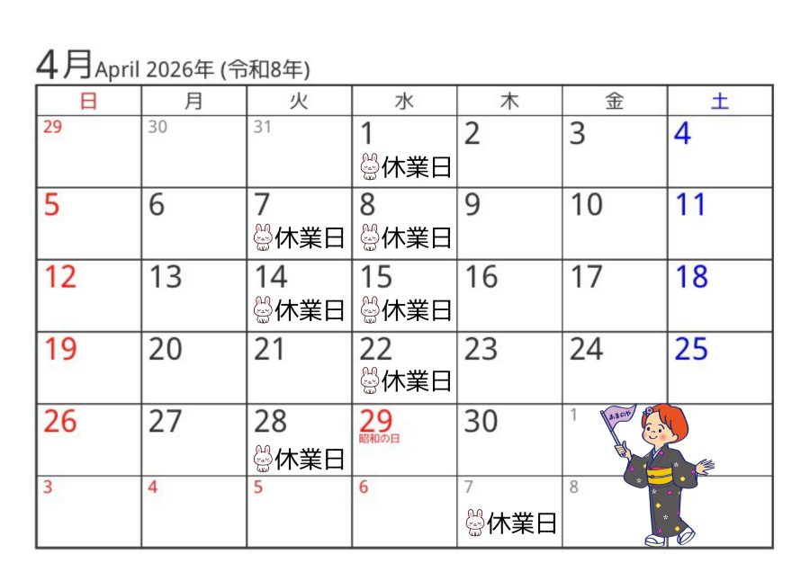 弊社より、休業日のお知らせです。