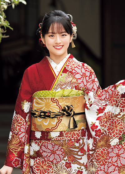 ミスは笑顔の似合う愛らしい振袖姿で。