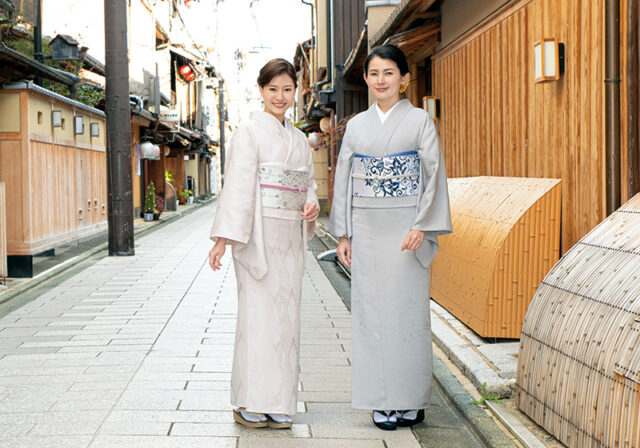 定番の亀甲柄をはじめ最近はモダンな色柄の結城紬も登場しています。観劇、コンサート、ホテルランチなど帯や小物のコーディネートで、母娘で楽しむのも素敵です。